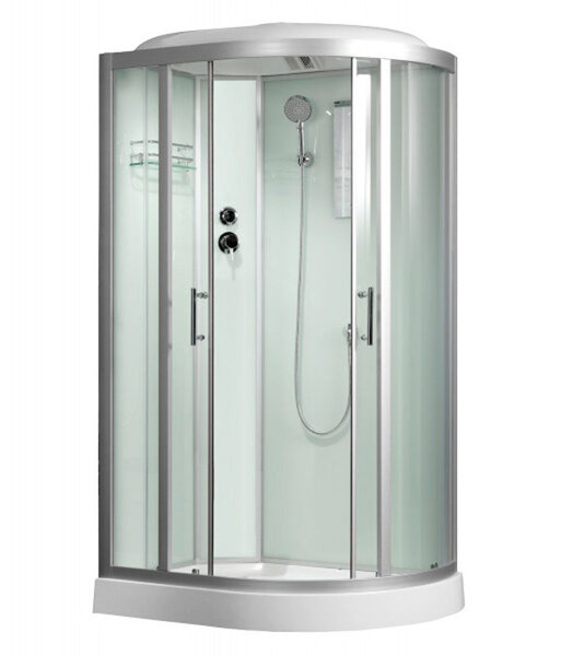 Душевая кабина Frank F309L/R, 110 х 80 см, стекло прозрачное, профиль матовый хром, 20156008/201560009Душевая кабина Frank 300 серии была создана для тех, кто ценит современный дизайн и качество, скрытое даже в мелких деталях. Неповторимые душевые кабины Frank с качественной фурнитурой способны сильно подчеркнуть стиль ванной комнаты. Это отличное решение для любителей современного дизайна. Безсиликоновая сборка и надёжная фурнитура.ХарактеристикиМодификация: угловаяМатериал смесителя: латуньМатериал поддона: акрилМатериал крыши: акрилМатериал каркаса: металлМатериал профилей: сплав дюралюминий (матовый цвет)Высота поддона: 150 ммКолба сифона: ширина 90 мм (с ловушкой для волос)Стёкла: закалённые (ESG) 6 ммЗадние стёкла: закалённое крашенное стекло (белый цвет)Передние стёкла: закалённое прозрачное стеклоРазмер: 1100 х 800 х 2180 мм Функциональные возможностиБезсиликоновая сборкаДвери раздвижные (с магнитами металлическими)Гарантийная безотказная работа в течение 35000 циклов открыванияРолики на дверях металлические двойные (оцинковка антикоррозийная )Верхний душ круглый ( с резиновыми соплами от известкового налёта)Вентиляционная решётка (2 штуки )Штанга с держателем для лейкиУсиленный гладкий шланг лейки ( с защитой от перегибов)Ручной душ (3 режима )Стеклянная полочка с ограничителем (2 штуки)